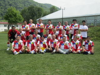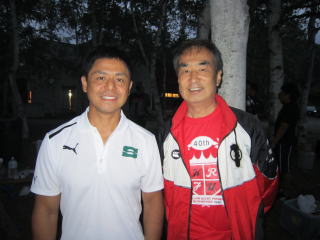 我がラグビークラブの創部50周年を祝して、定山渓に東京と札幌のクラブが集まり記念試合が開催されました。定山渓が本拠地のバーバリアンズと、東京から来道した不惑チームと親善試合を行ったあとの一コマです。同時に開催された7人制ラグビー大会に参加した専修大学のコーチ、ワタこと村田亙とのツーショットです。リオ五輪から正式種目となる7人制ラグビーでは恐らく村田が監督としてメダルを目指すはずです。